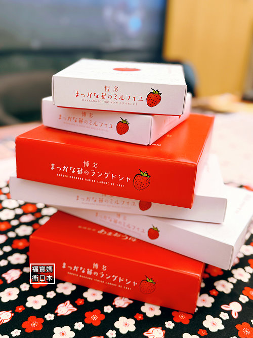 選用福岡高級品種『甘王草莓』,將其甘美及香氣濃縮於甜點之中,包裝都有著鮮紅草莓圖案,是福岡極具代表性的伴手禮~