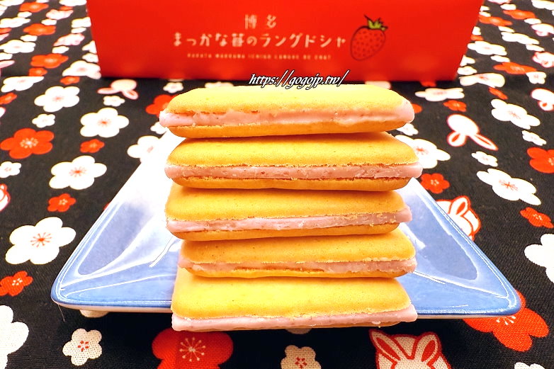 每天熱賣10000片的博多鮮紅草莓夾心薄餅(ラングドシャ),已連續10年獲得金賞受賞的福岡伴手禮,是花福堂人氣No.1名產,除了給自己,送親友也很有面子~