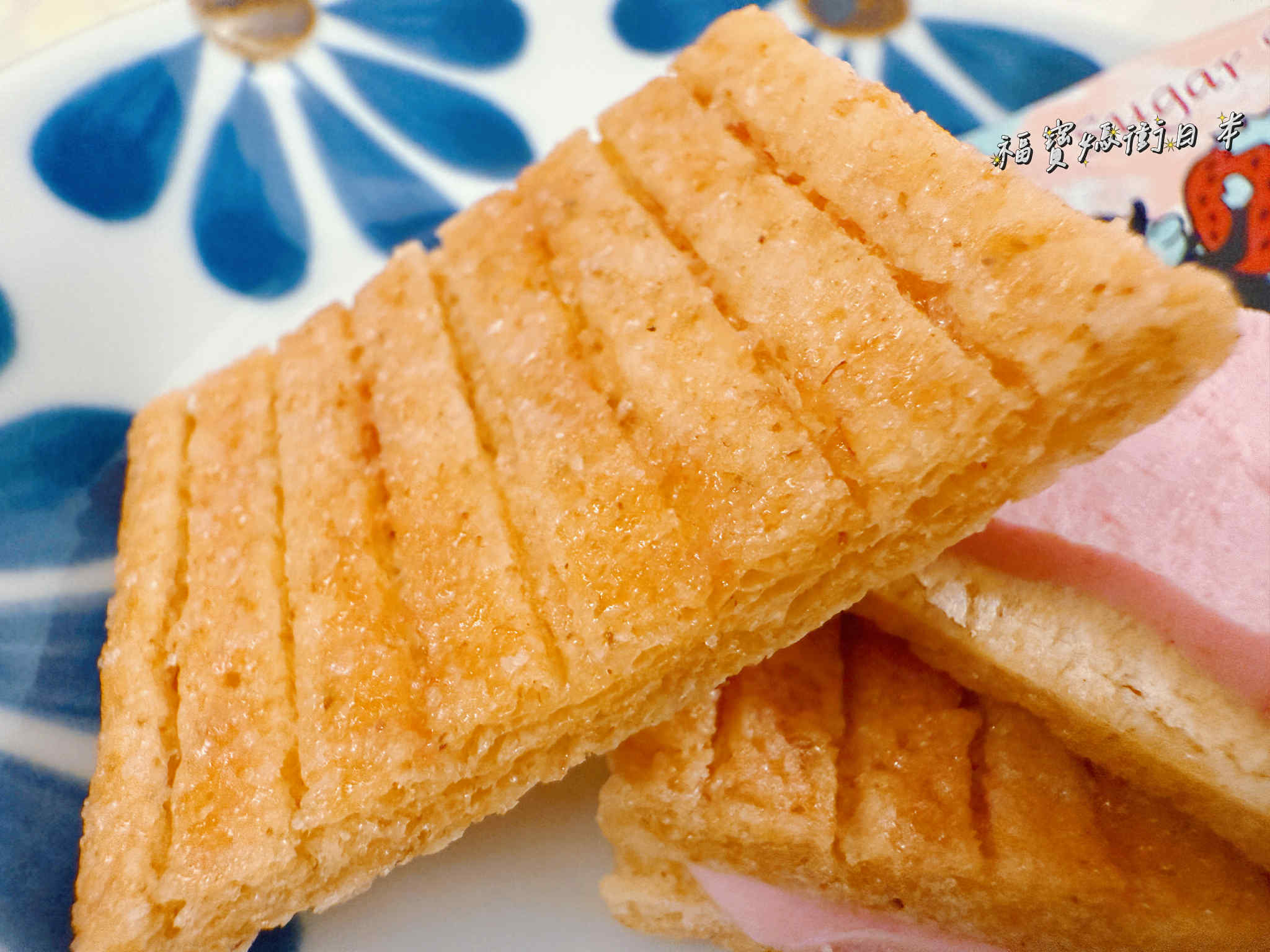 除了原味,也可以試試甘王草莓的內餡是甘王草莓醬+奶油,草莓醬還看得到一點點的草莓顆粒唷! 餅乾也添加草莓,但吃起來不會覺得太甜,就是要整個吃起來很草莓啦~