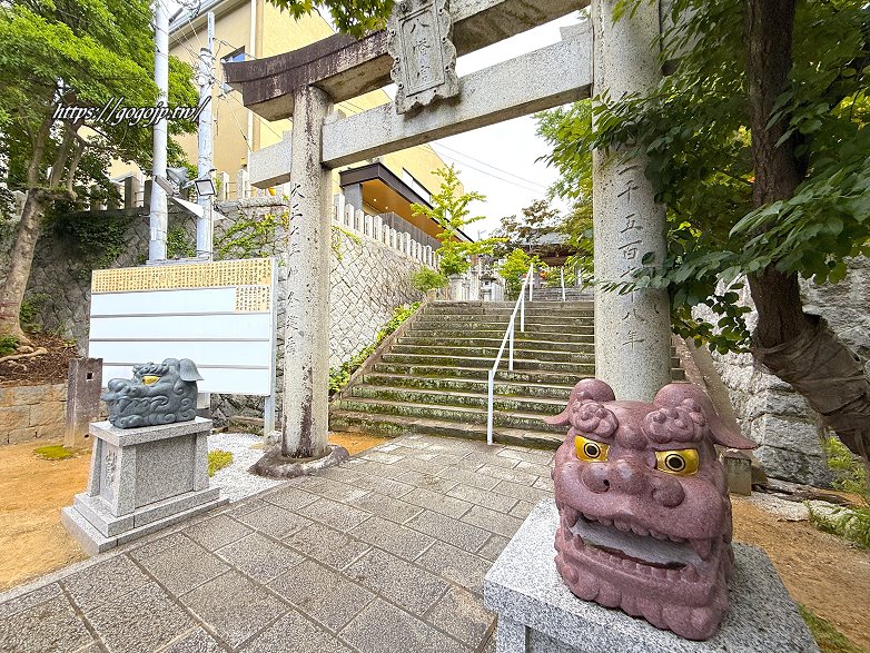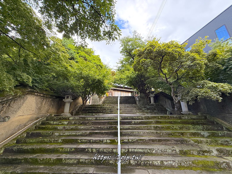 從大鳥居到階梯的兩側都是楓樹,所以秋季可以來紅葉八幡宮追紅葉喔~