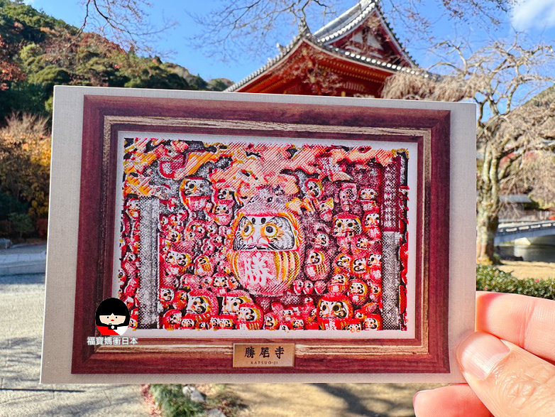 每張門票會附上一張集印明信片,一共6個印章,邊參拜邊集印,疊印後是勝尾寺最經典的達摩奉納棚場景~