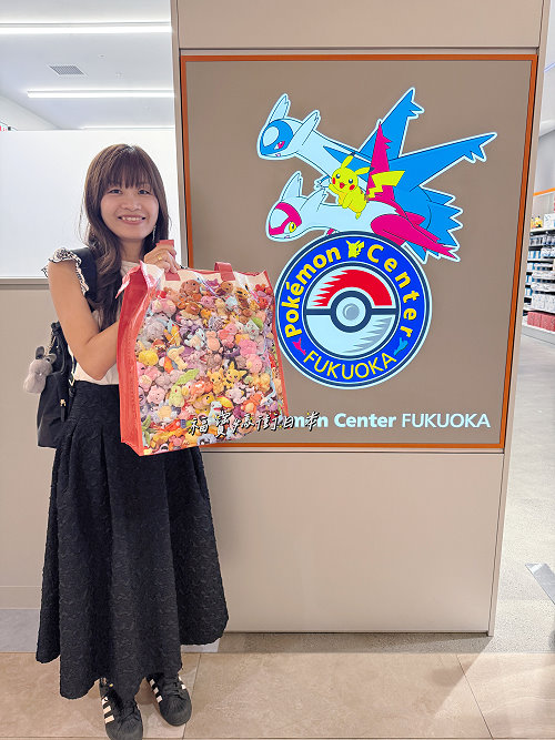 福岡寶可夢中心未提供免稅,但一點也不影響想花日幣的心!結帳排很多人,但一共有10個櫃檯,所以還是很快就結完帳~