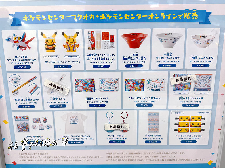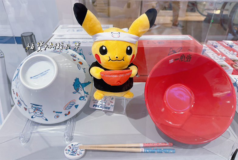 包含穿著綁著頭巾、端著拉麵的皮卡丘,拉麵碗、筷子、湯匙、聯名包裝的一風堂拉麵,還推出有田燒的一風堂拉麵碗!