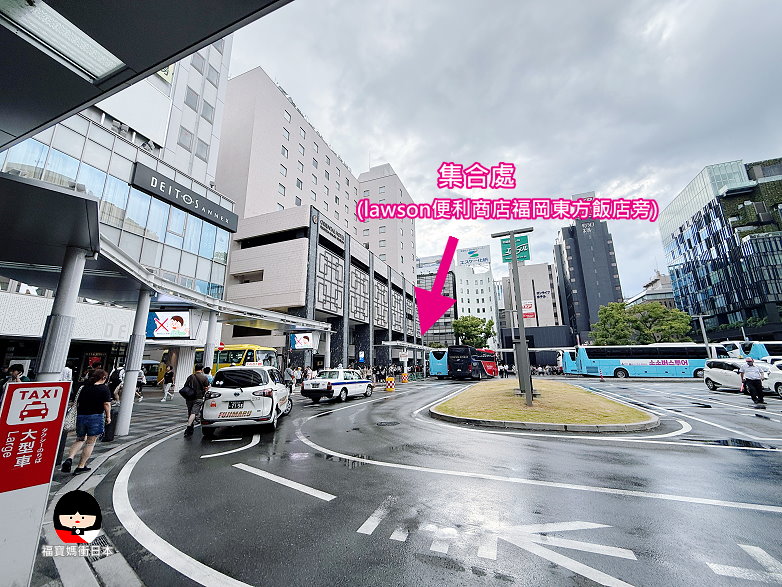 第1站.08:00出發,於羅森福岡東方飯店(博多車站筑紫口前)集合, 谷哥上位置