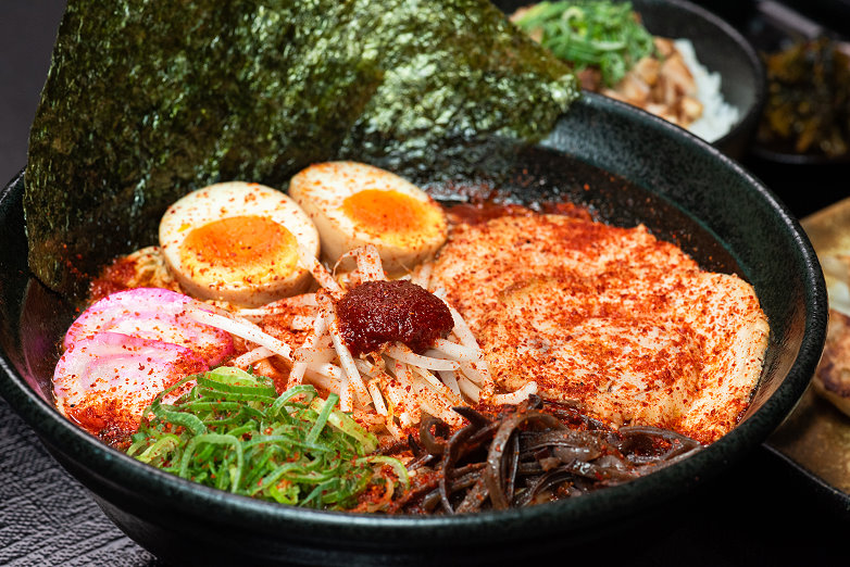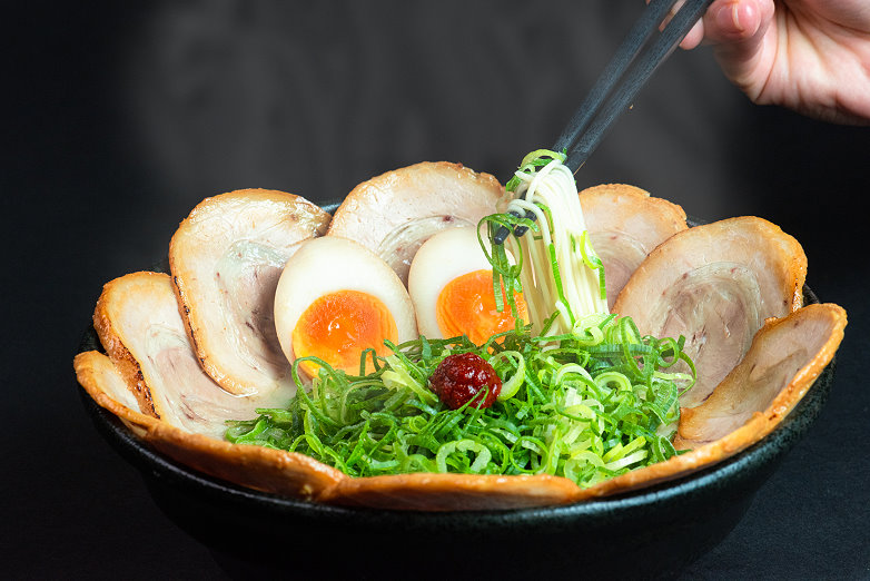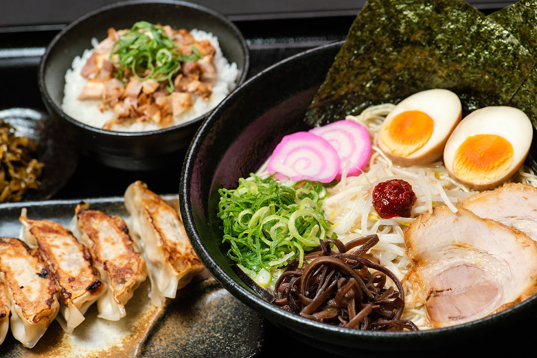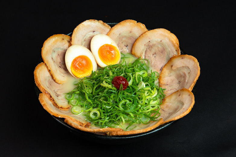 湯布院天然水熬煮出豚骨湯頭,不會太濃厚,所以沒有豚骨湯的重味!選用大分地產豬肉叉燒、湯布院蔬菜、豆芽、一顆半熟蛋、木耳、海苔、魚板、辣味噌等配料,搭配自家製細麵條,吸附更多的豚骨湯,滿滿美味一起吃下肚~