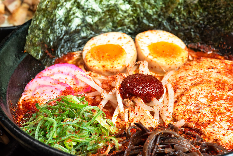 吃的時候,可以先將辣味噌慢慢攪拌、溶入豚骨湯麵,伴隨撲鼻的辣味噌香氣,令人等不及品嚐、口水直流~